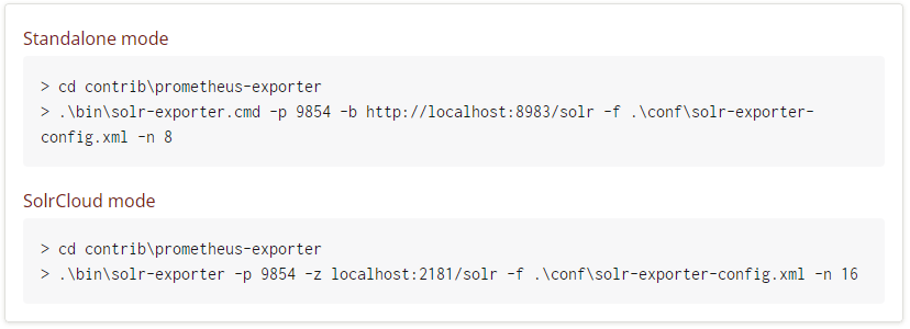 - -n the number of threads. The solr-exporter creates thread pools for requests to Solr. Request latency can be improved by increasing the number of threads (default is 1).
