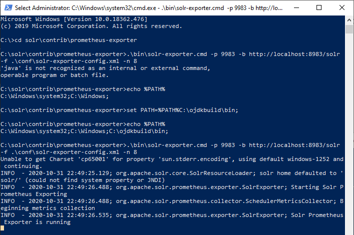 The exporter was a separate project on github and was included in Solr 7.3 as a contrib project. So if you are running Sitecore 9.2 or above you already have this exporter in your solr container. The exporter is not running by default and must be started using the .\bin\solr-exporter.cmd located within c:\solr\contrib\Prometheus-exporter directory.