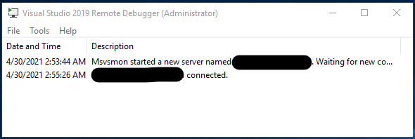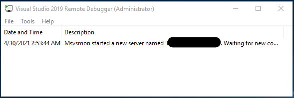 Once installed you will want to run the debugger as Administrator. If its the first time running the debugger you will be prompted to configure it. Follow these instructions to setup the remote debugger. When configuration is complete, the Remote Debugger window appears.