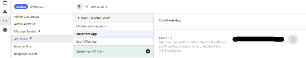 Note: You will need to add your Buyer Client Id. This can be retrieved using the Portal API console -> API Clients -> Storefront App -> Client ID copy the Client Id and add it to your .env file.