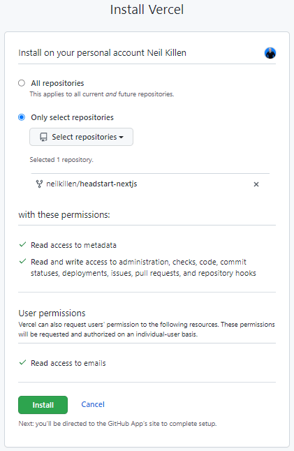1. We need to ensure the headstart-next.js application is accessible for Vercel, so i’ve forked the project so it is accessible on my github account.