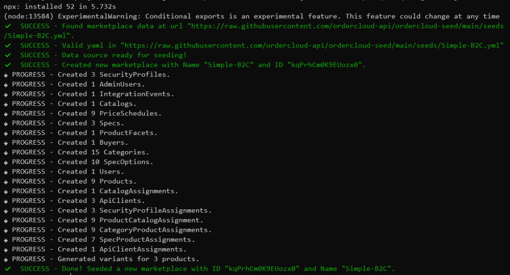 As you can see from the screenshot it creates a new Marketplace called Simple-B2C and populates it with the following data: