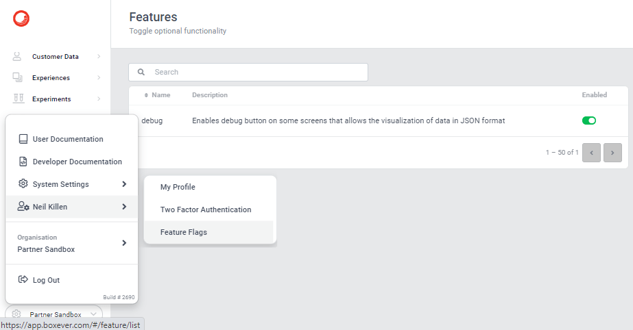 To enable click on the Sandbox in the bottom left corner -> Your Profile -> Feature Flags -> Enable Debug flag. The features will vary on your account privileges.