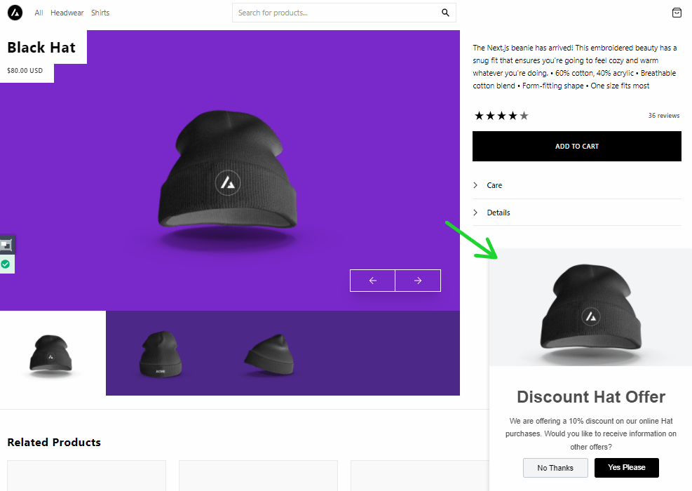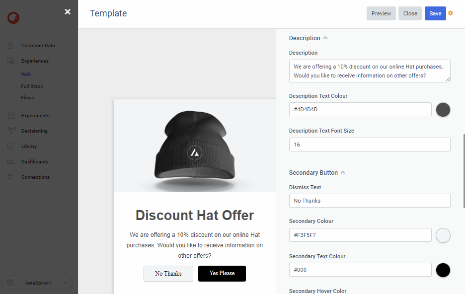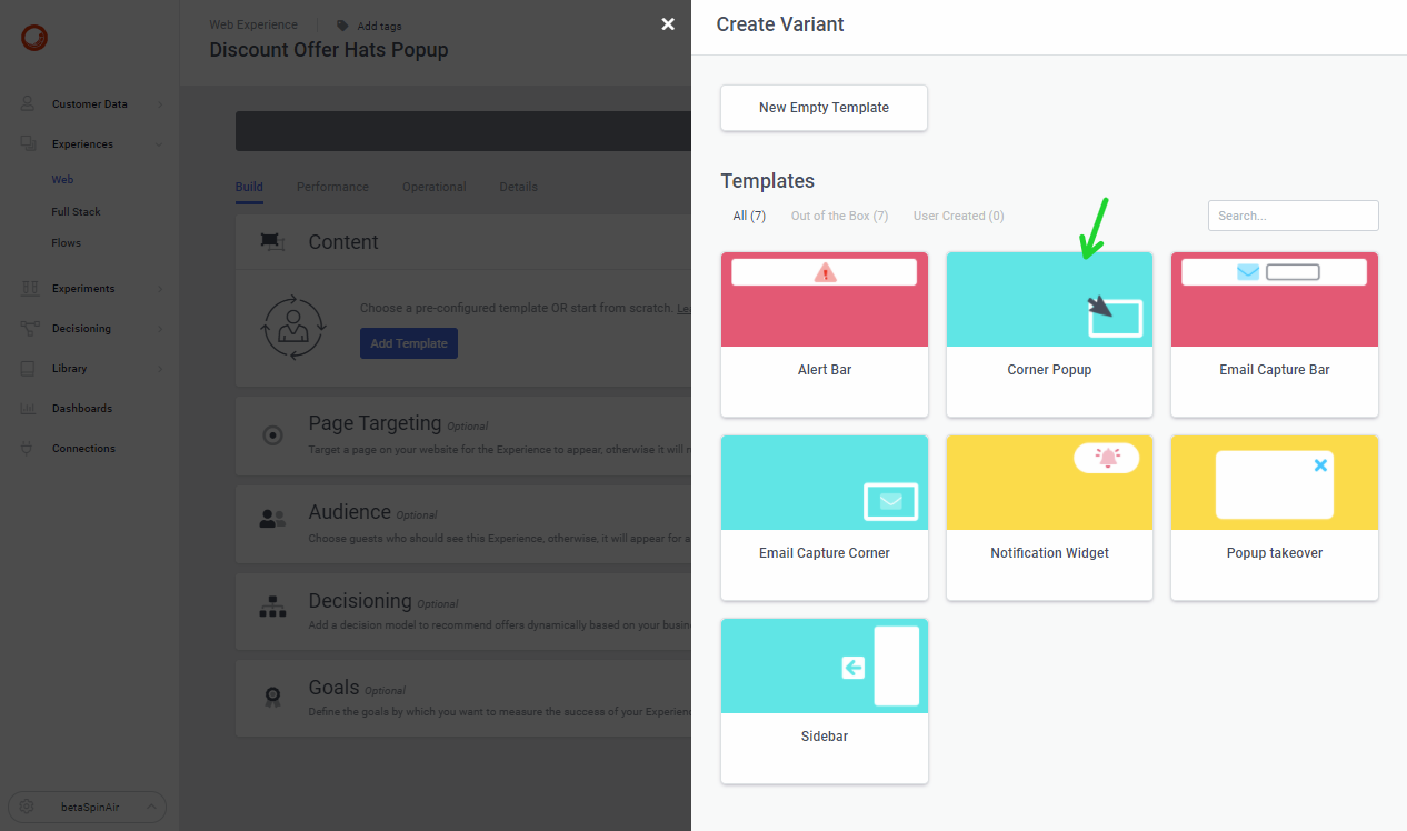 My pop-up will display a discount offer on a product detail page. To create a web Experience follow these simple steps:
