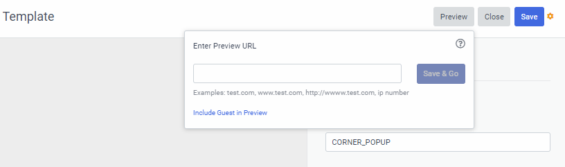 5. Once we have our template looking the way we want it we can easily preview it on your site by clicking the Preview button and entering the URL for your site and click Save & Go.