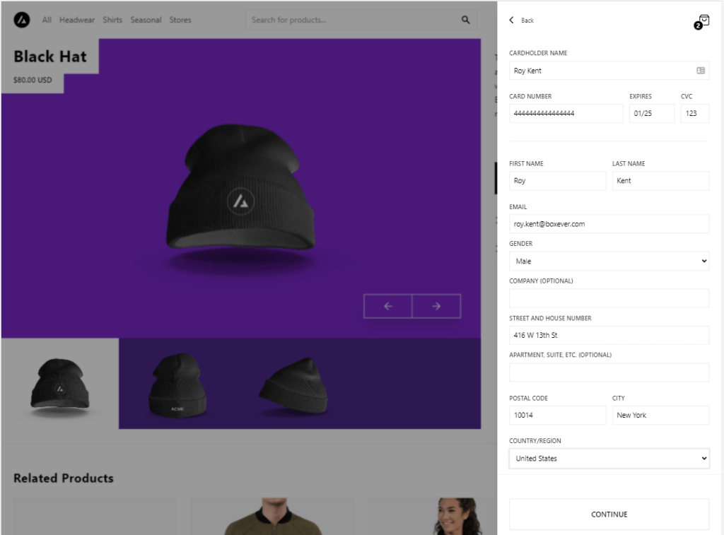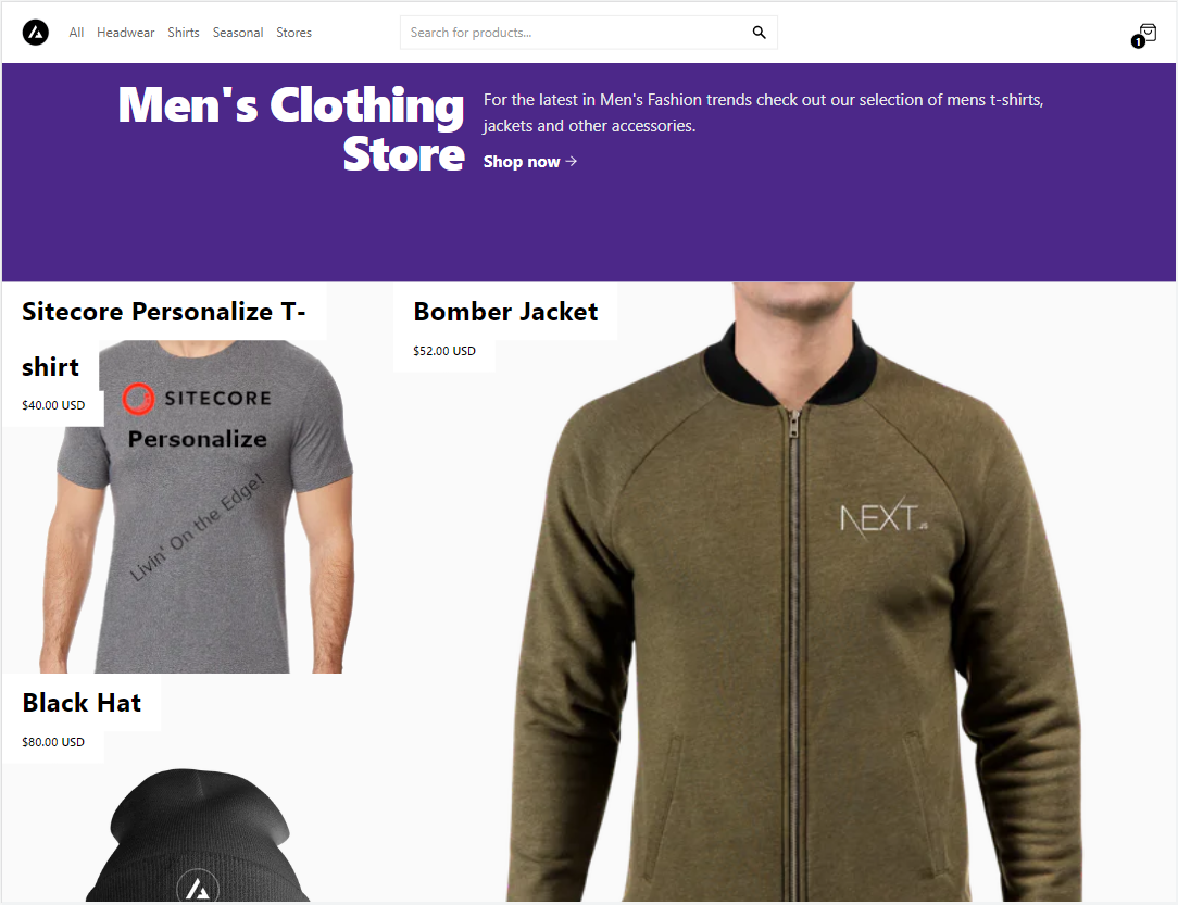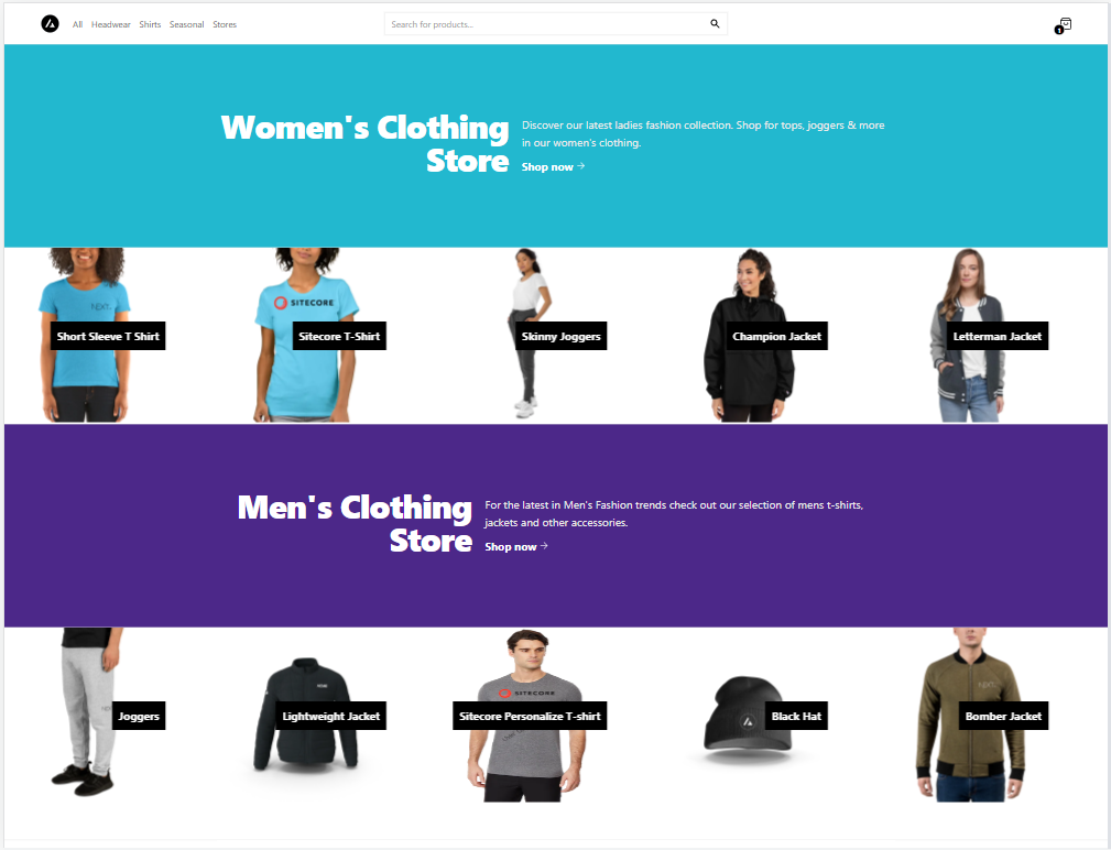 Then we’ll personalize using guest information collected by Sitecore Personalize to display products from our men’s or women’s store.