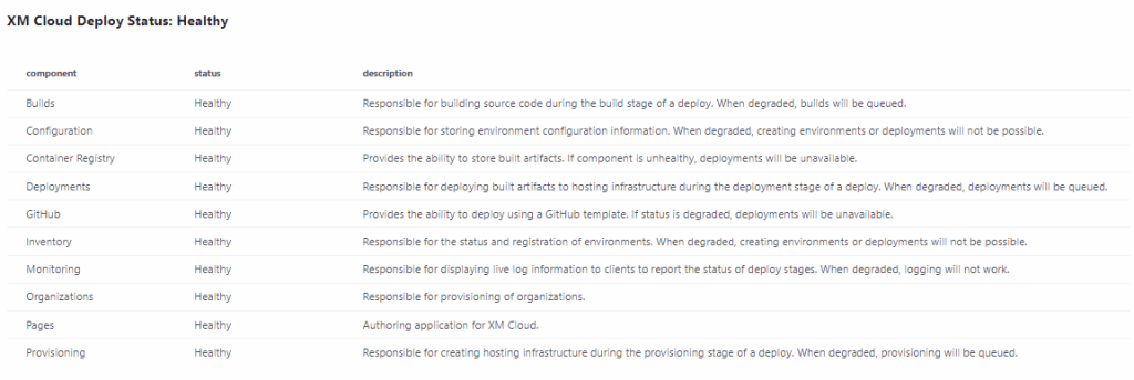 7. XM Cloud Deploy Status – allows you to check the status of different
