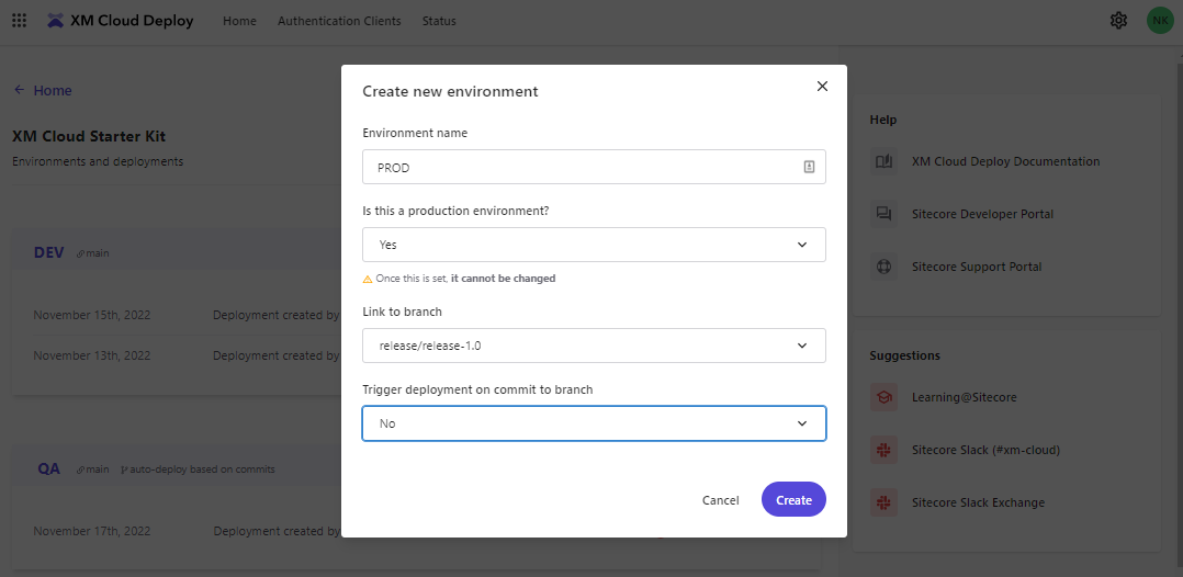 - On the menu bar of the XM Cloud Deploy App, click Home.