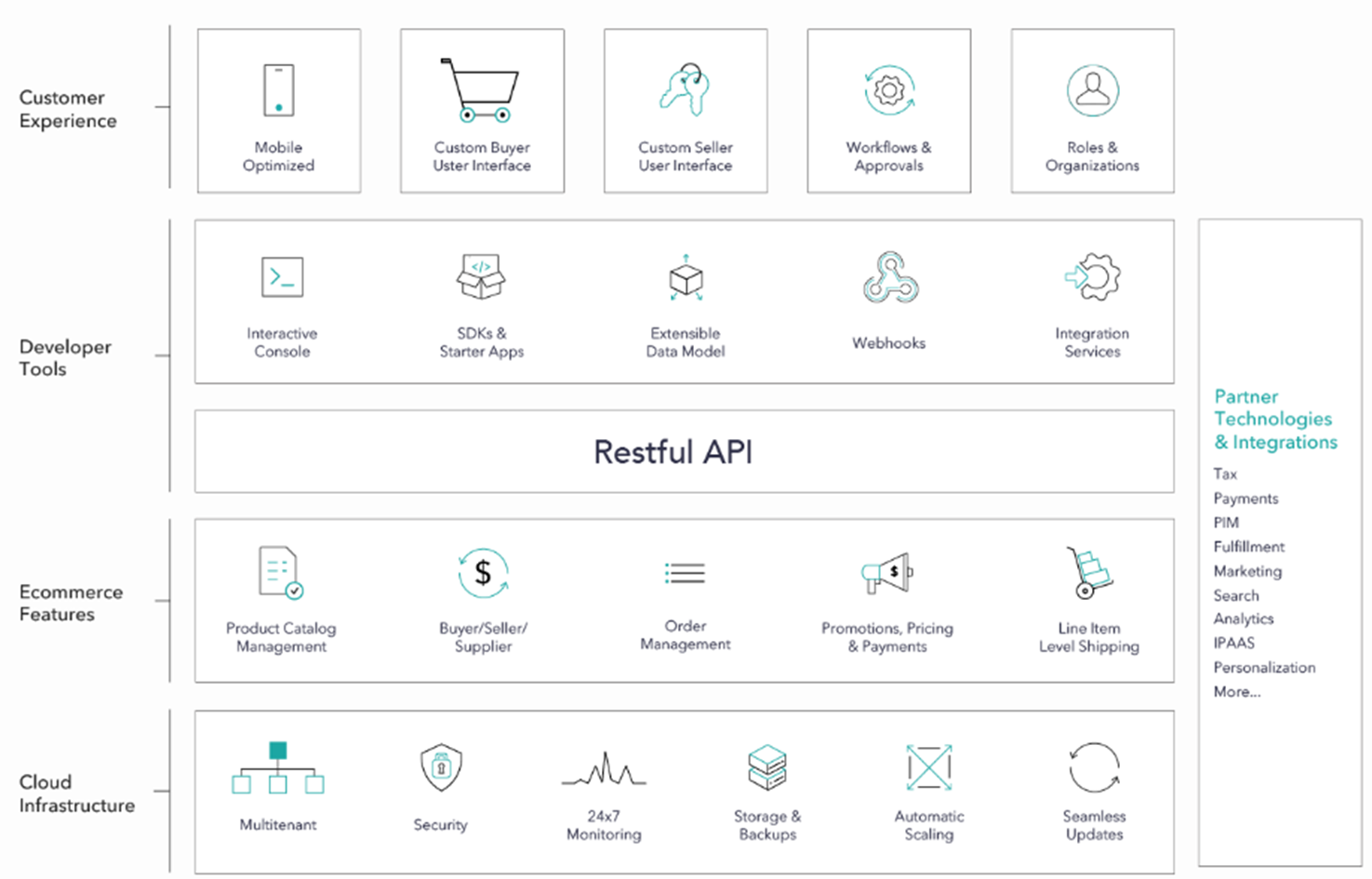 OrderCloud is a SaaS Ecommerce platform. Due to high degree of configurability it is capable of handling complex B2B, B2C and B2X scenarios. Through its powerful features and headless Rest API architecture you can assemble a commerce solution to meet your clients exact requirements. Whatever commerce functionality a client might need you can build it with OrderCloud.