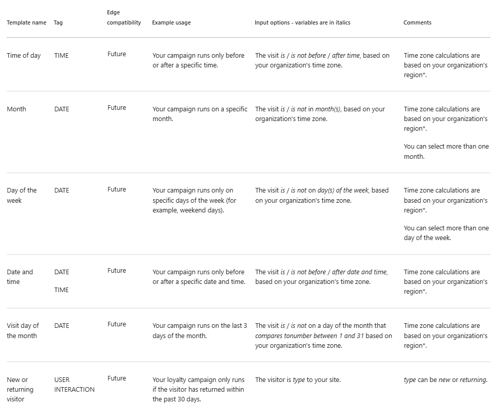 Date and Time condition – was added in July to XM Cloud and Personalize addressing the need for more accurate control over date and time personalization while also simplify the process to a single condition rather than needing multiple conditions to set-up date/time based personalization. While Date and Time